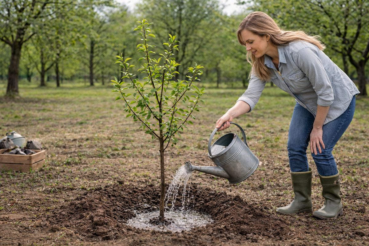 Při výsadbě se především musíme vyvarovat několika základních chyb, které mohou být i fatální. Prostokořenné stromky bychom neměli nikde nechat povalovat ve větru nebo na přímém slunci. Vyplatí se je nechat před sázením asi tři hodiny namočené ve vodě (kontejnerovým stačí ponoření jen na cca 15-20 minut i s kontejnerem).
